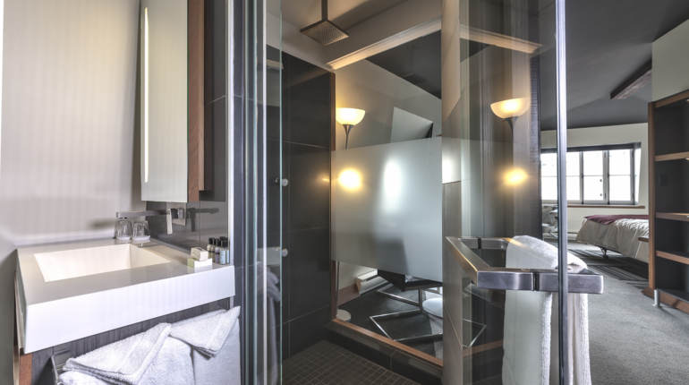 Chaque chambre est équipée d'une salle de bain privée: avec douche vitrée ou avec un combo baignoire et douche
